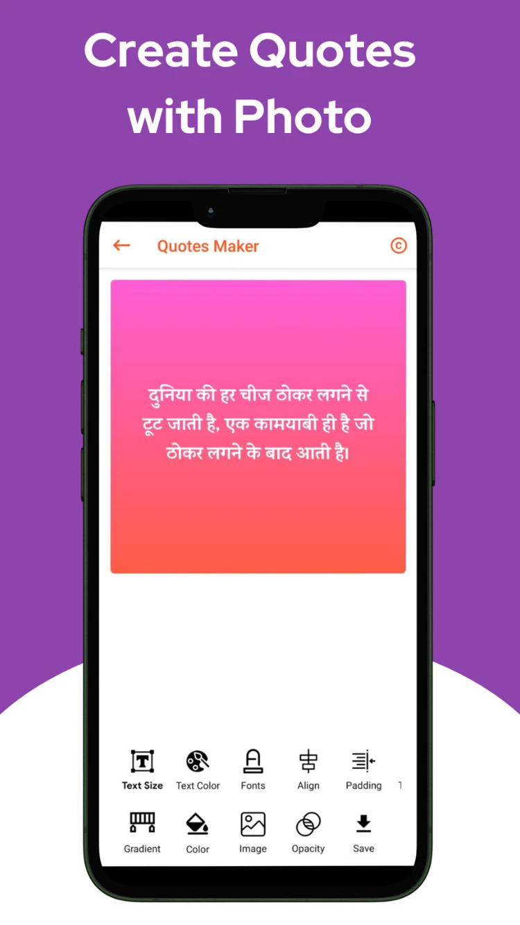 With the help of this app you can create your quotes using your photos or other backgrounds and download it.